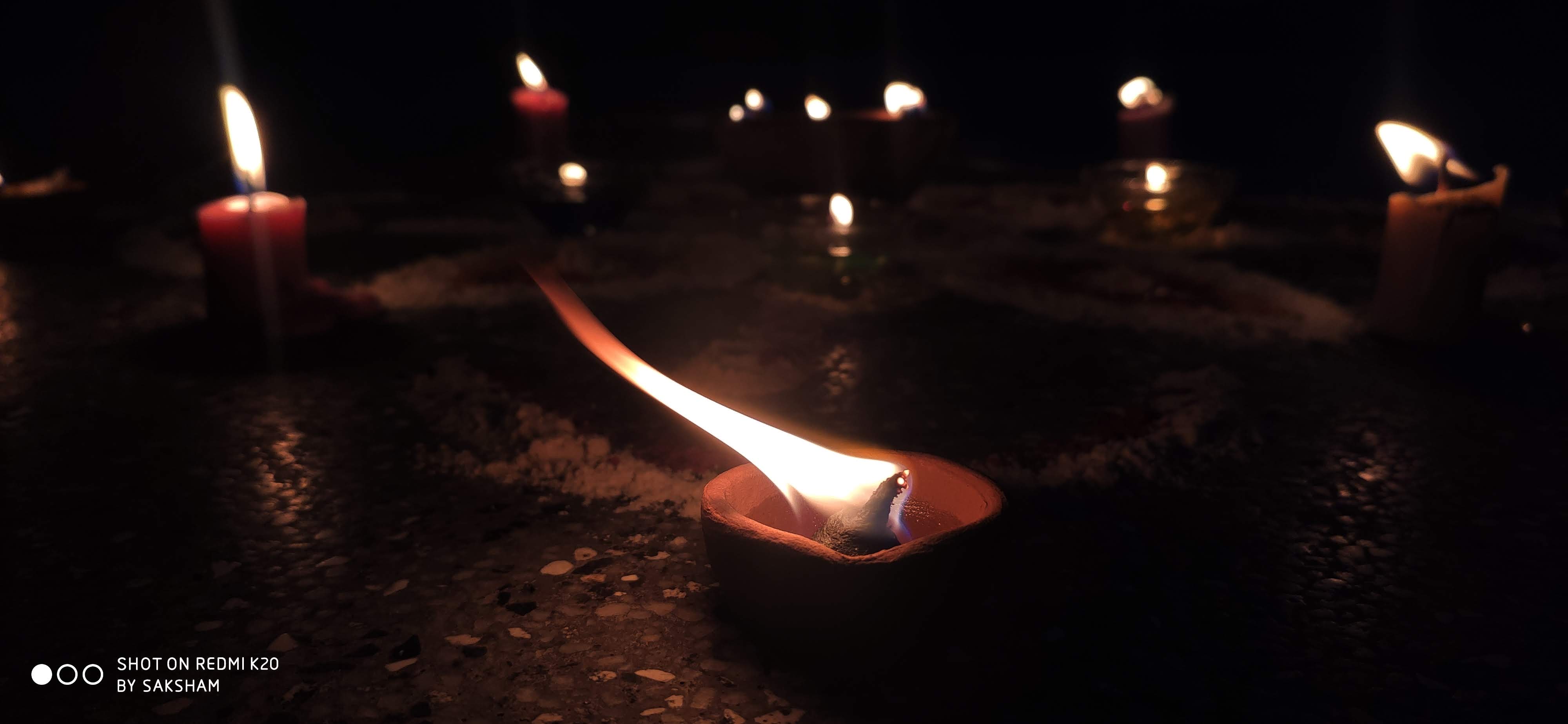 Illuminating diyas (oil lamps) during Diwali, the festival of lights.