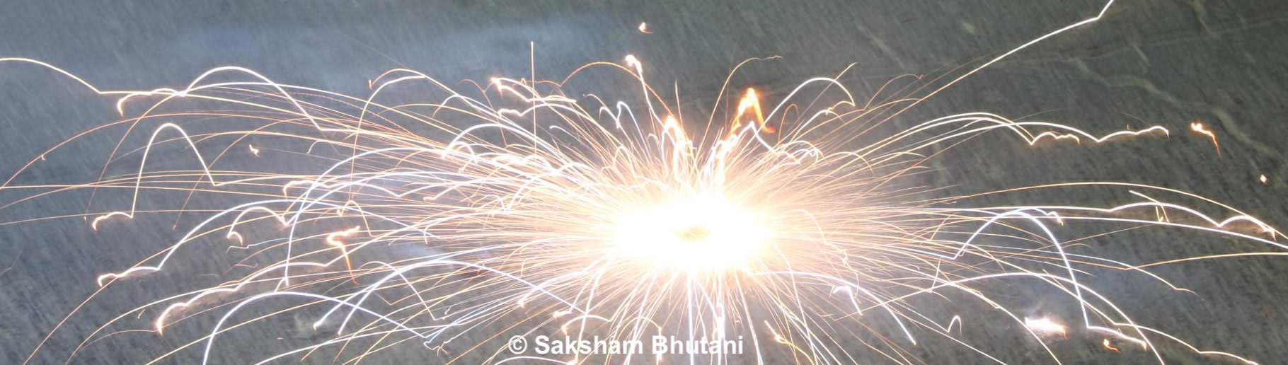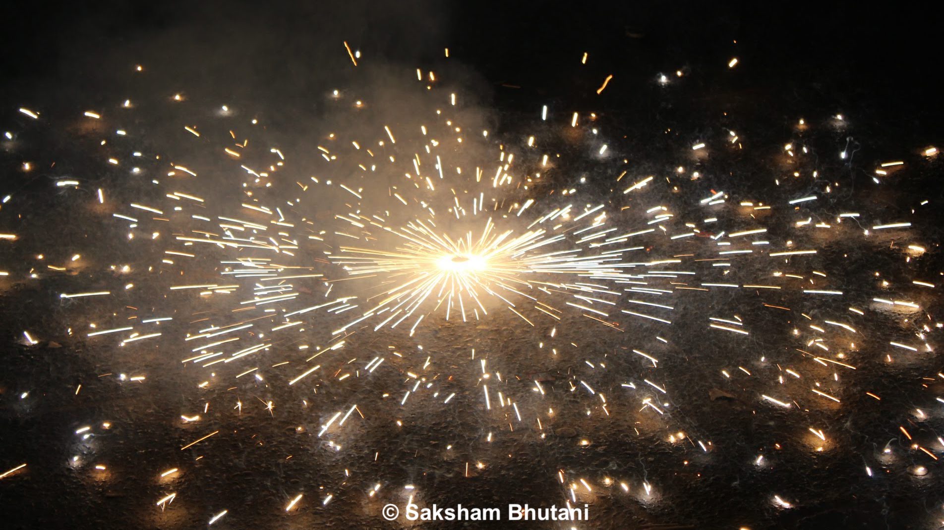 Chakri firecrackers during Diwali celebrations (left: long shutter speed, right: short shutter speed).