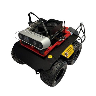 We assembled a 4-wheel drive robot platform equipped with motor controllers and an NVIDIA Jetson Nano as the onboard computer along with an Intel RealSense depth camera. The Jetson Nano interfaces directly with the motor drivers via GPIO pins, issuing individual velocity commands for each wheel. The entire system runs ROS 2, for modular perception, planning, and control.