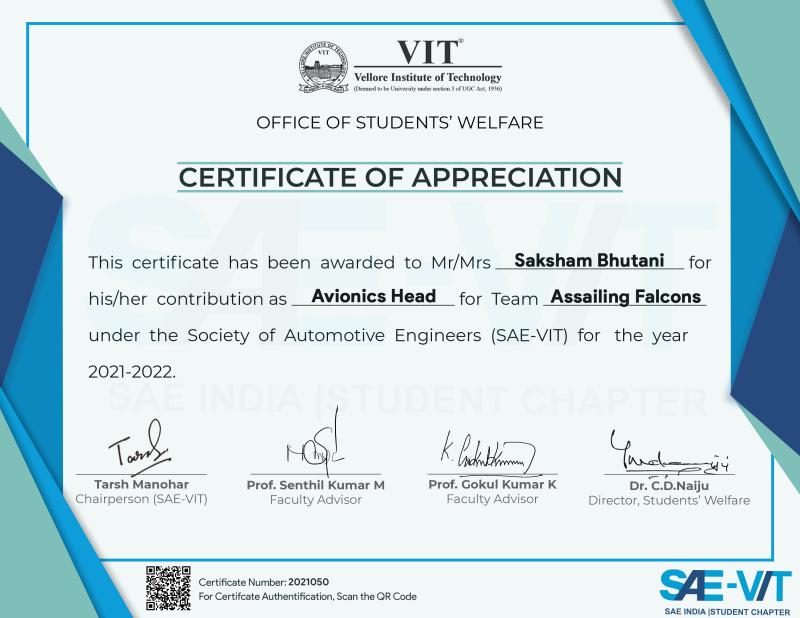 Designed the Avionics system for the Primary Aircraft, including the selection of appropriate components and the integration of all systems.