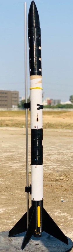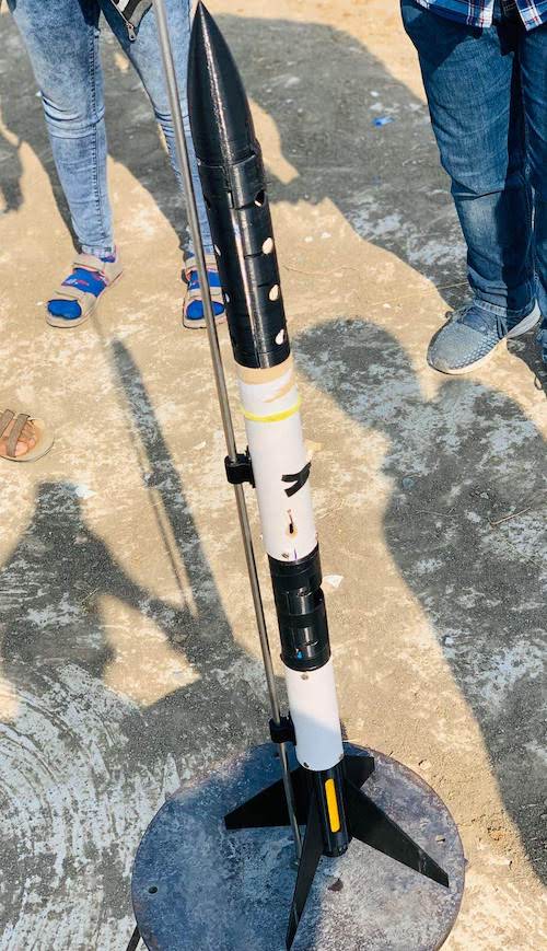 A Team comprising 9 interns worked on different aspects of the Rocket, namely 2 interns worked on the Design, 2 interns worked on Avionics, 2 interns worked on Recovery System and 3 interns worked on Propulsion.