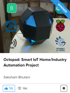 There are many IoT automation projects out there, but trust me there is nothing like this! Octopod is made using NodeMCU, Arduino Uno, and Raspberry Pi 3. Octopod allows you to make your home smart. Octopod sends you variety of data like temperature, humidity, and gas quality inside your home. Octopod also sends you notification whenever it detects any sort of motion inside and tells you when you need to water your plants. You can also control your appliances through a Blynk application on your smartphone. Octopod even enables true mood lighting!